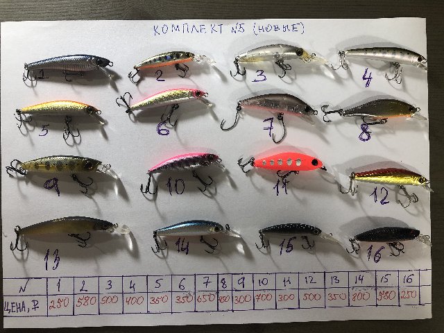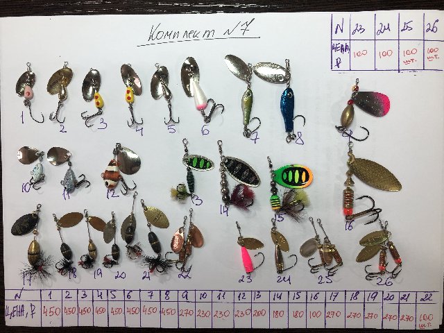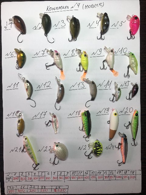 Конкретная цена приманок (каждого комплекта) указана на фото в таблице. (Прошу прощения у модераторов. Пропустите этот пункт,пожалуйста) ;)
