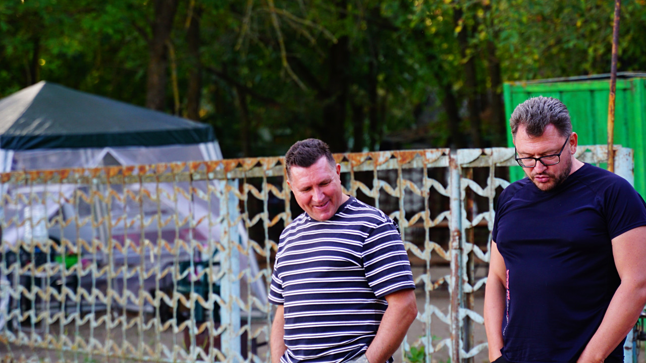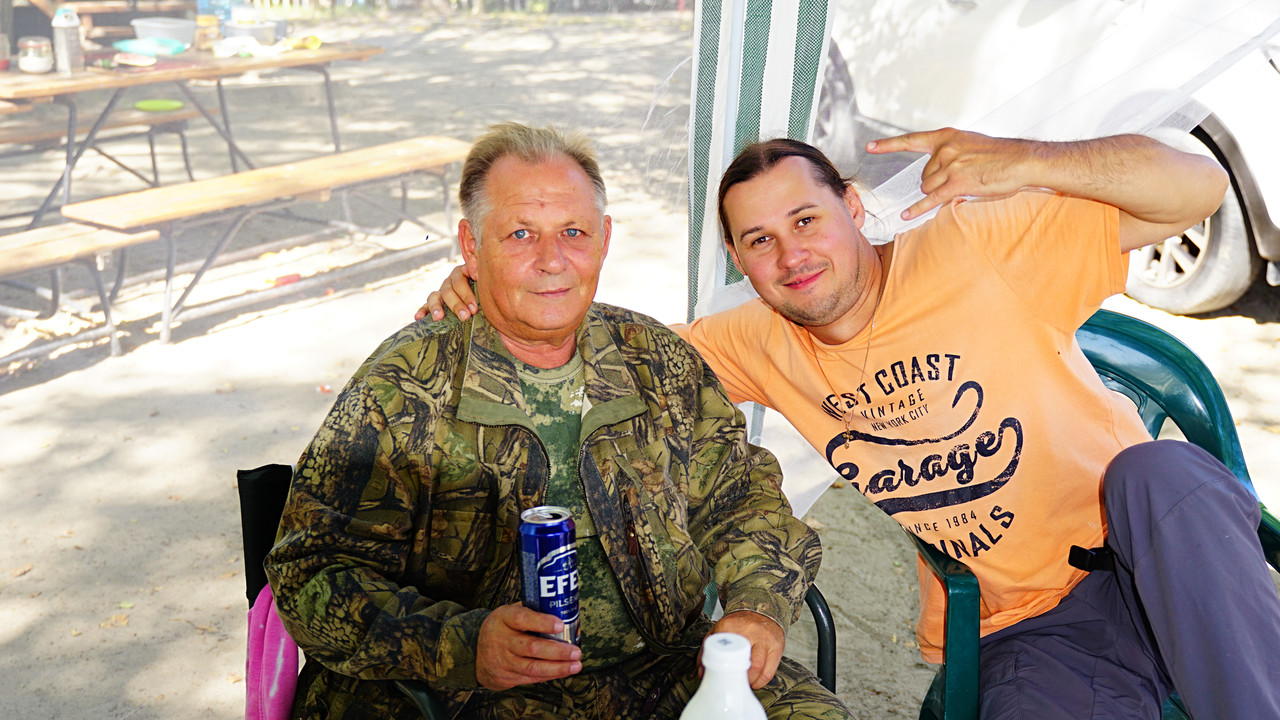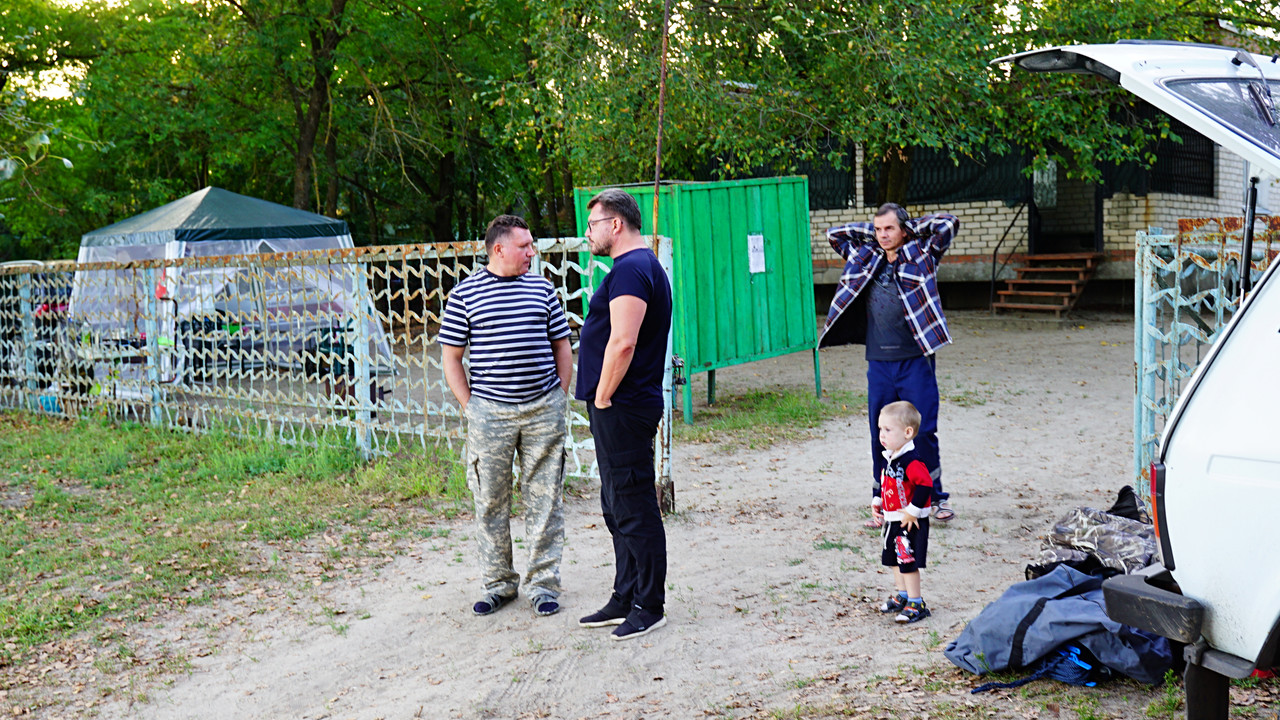 Добрались до места затемно, расположились, пройдясь по территории нашел и обнял почитай всех. Посидемши до полуночи у водомоторников решили баиньки, "завтра ж на рыбалку" (с). Утром выбегая на построение (хоть и заранее проснулся и ходил на регистрацию и снимал подтягивающихся) снять всех в строю, клац - и села батарейка (было очень прохладно).... твою ж ...........  пока сменил - снял не построение, а расхождение....