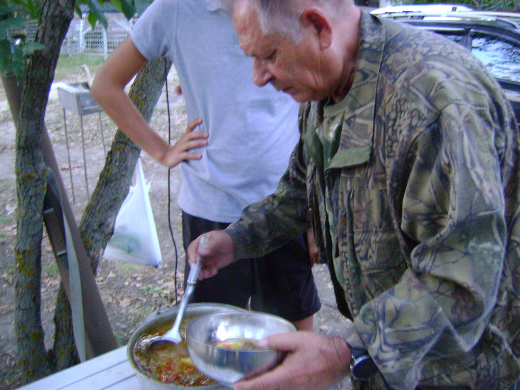 Дружное поедание и выпивание (впечатлила вишневка от Паши) медленно перекатилось к очередному традиционному действу - посиделки на берегу у костра.
