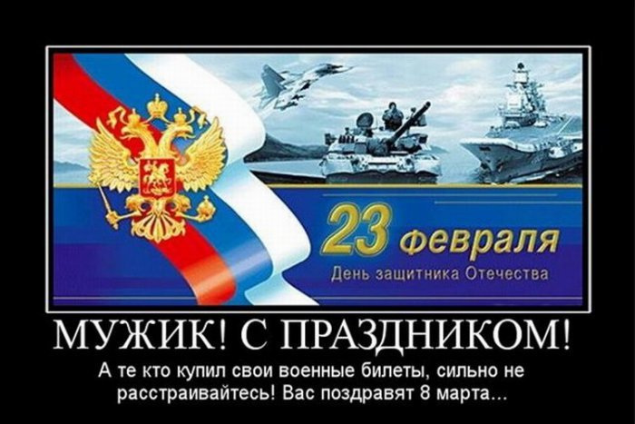 Поздравляю с 23 Февраля настоящих мужчин-замечательных рыбаков! Желаю всем вам терпения и выдержки, отваги и мужества. Пусть каждый из вас поймает свою золотую рыбку, пусть рыбная ловля вас закаляет и делает только сильнее, а дома ждут любимые близкие люди. ;)