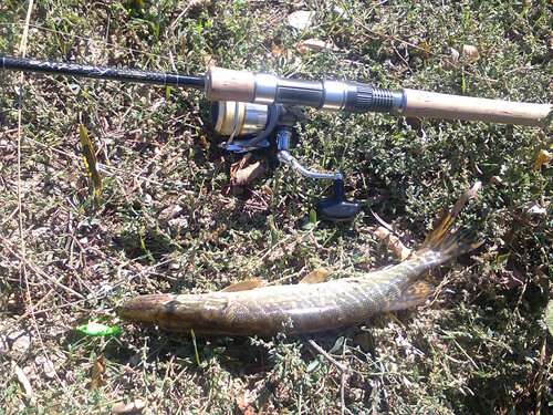 Сегодня, возвращаясь с Таганрога, заехал на нижний Миус, в район тополей. Цель была хотя бы полчасика поджиговать, т.к. с этим видом спиннинговой ловли я не очень знаком. Народу там оказалось довольно много, но все, кого я видел, тупо сидели на берегу речки охраняя с десяток спиннингов типа "крокодил"( у каждого) с  колокольчиками на шнурах. Забегая вперёд скажу - кого они там ловили я так и не увидел, за 40 мин. нахождения на берегу ни кто ни чего не вытянул. У меня же за это время попался окунь на 290 гр. и две не внятных поклёвки. Что ж на речке был, кое-какой опыт получил.