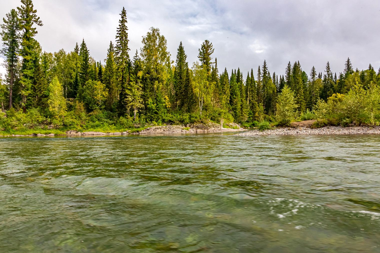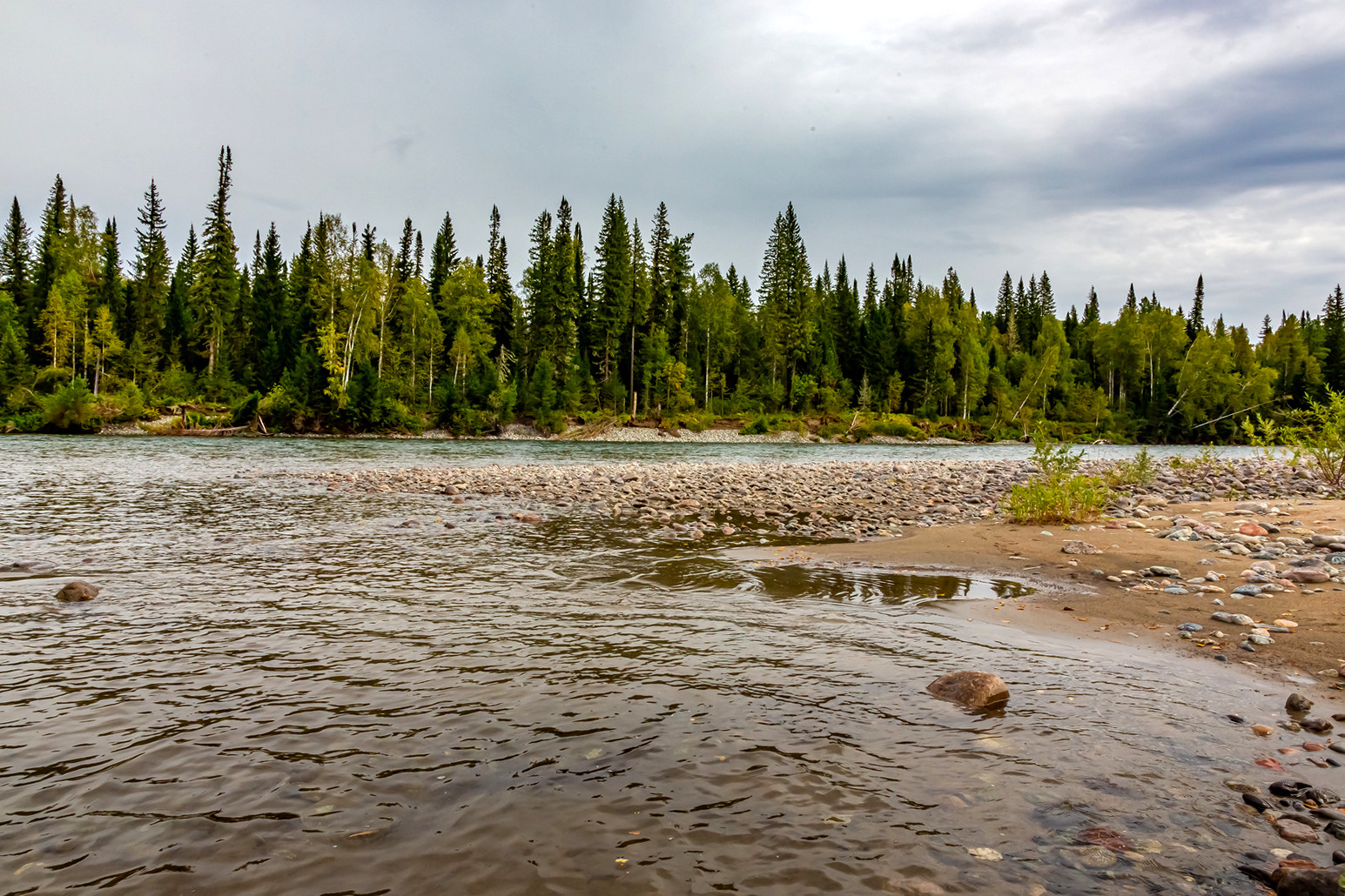 а это место (в пятидесяти километрах, выше по течению Казыра) называют "перекат Кошурникова". Тут он (последним из группы) погиб.