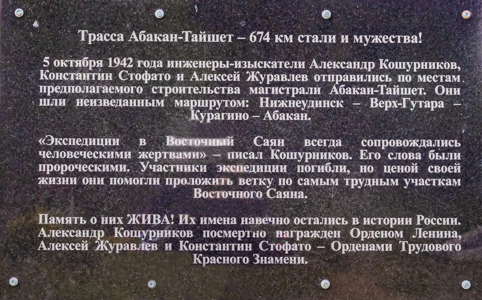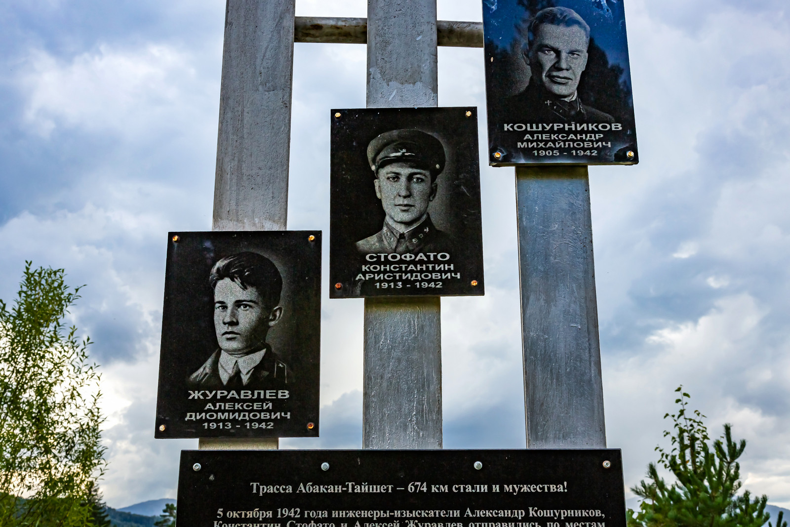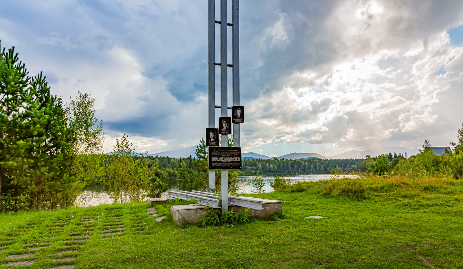 Установлен у деревни Тридцатка, на берегу Казыра мемориал,