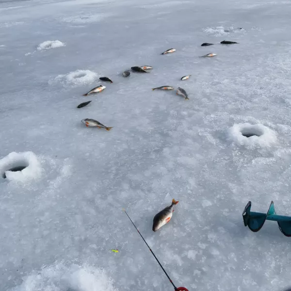 Около 15 кг, клевала в основном тарань, под утро подошел гибрид. Ночь тишина. На выходе уже были закраины от берега, да и лед уже не айс, пропитывается водой. Похоже единственная в этом году рыбалка. Посмотрим. Будьте осторожны.
