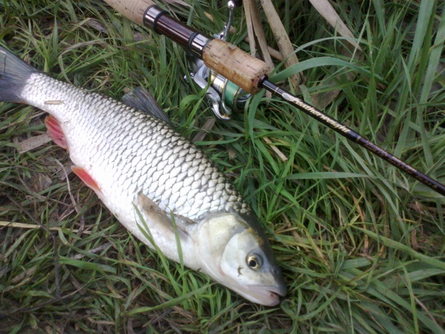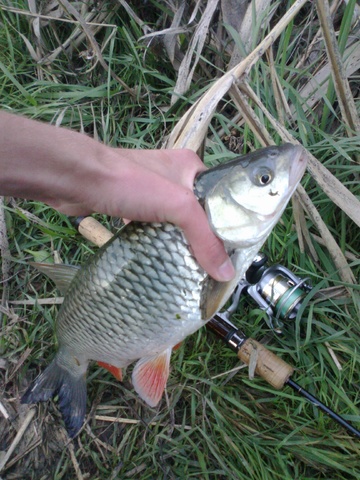 Подхожу к перекату,делаю заброс в бушующую пучину,даю приманке немного утонуть и начинаю банальную равномерную проводку(с лета таковой не пользовался :) ) и это даёт результат,на первой же проводке ловлю некрупного судачка,а за ним,всё-таки и разбойника голавлика,грамм на 300,но радости моей не было предела.