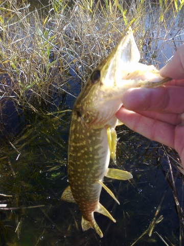 Сегодня была вылазка на полтора часа на речушку перед завтрашним приездом кума. и из4 подходов  к воде было поднято 3 мелко щуки, одна сразу была осторожно снята с тройника и отпущена в родную стихию, остольным повезло меньше. т.к нельзя жадничать, заглотили по самое не балуй. видел 2х типов на моей мечте (флинк 320), на мой вопрос поймали ли что, поймал лишь их надменный взгляд и тишину. походу профи ))) ну да ладно.  В общем  план на завтра составил, цели намечены. Надеюсь что не ошибаюсь . Всем НХЧ