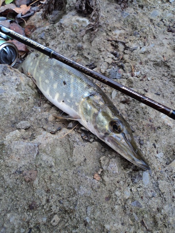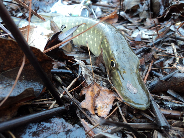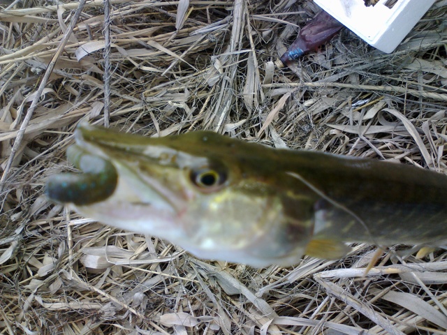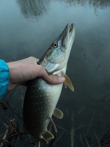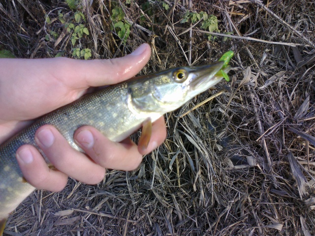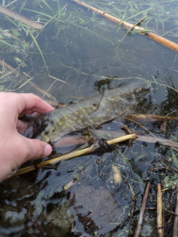 Что удивительно большинство поклёвок случалось на струе,где было сильное течение,глубина   около 30 см и остатки травы.Нетипичные для щуки места.