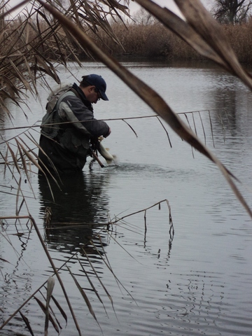 Всем вечер добрый.Сегодня была заранее спланированная вылазка на Дон,район Арпачина. Вылазка удалась,рыбалка то же,так как желания ОпАть не совпадает с понятиями склада характера ;D,то все таки приехали ловить рыбу,а что с ней делать зависит от размера ;).И так про погоду! :o :o :o ЗиМа!!!,холод собачий ,аж -13 ;D,дождь мокрый срывается, ;D,волны в колено ;D,и рыба вся ну :o спряталась :o,народу никого ;D,стать негде.Это так зимний переполох ;D.Ну а серьезно,то очень как то все мрачновато получилось,может все таки крутоверть погоды в течении недели сыграло,и упадок давления в атмосфере,но задень было изъято из воды 4 судачих особи(один поехал домой,остальные поплыли ;D)2 окуневых персоны,(домой поехал 1),и один сход. Встреча и общение ,пусть кратковременное,с добрыми  людьми ;)придает уверенности и настроя.Всем спасибо,рад был увидеться(Сергей,Гена!)Ну как то так.Всем НХНЧ,до новых встреч на водоеме.