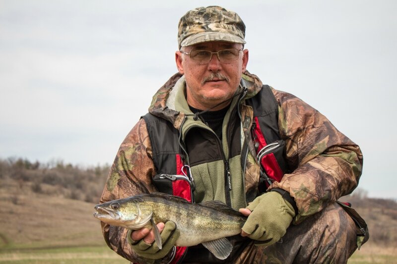 Сегодня проснувшись в 6 утра, за чашкой кофе спорили с отцом куда поехать; половить тарань или протестировать обновки. Отец не стал долго упираться и согласился поехать попытать счатье по хищнику. Прибыв на водоём к 8 утра, разобрав спиннинги, разошлись в поисках клыкастых. Проходив 2,5 часа без поклёвок, мы начали подмерзать от скуки. Но около 10-30 мы начали потихоньку находить ключик к рыбе. На очередном забросе почувствовал слабенький тычёк, подсечка и первый, но не крупный трофей на берегу.