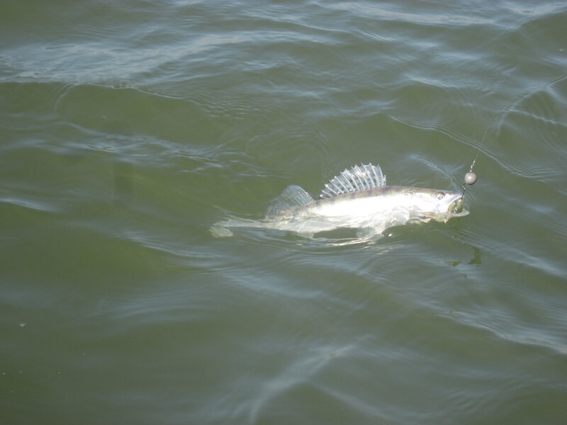 Вчера получилось выбраться на рыбалку на 2 часа с 7 утра. Цель судак. Цель поставлена, цель достигнута. первым в мои руки попадает малыш судачок, утоплен на месте но под конец рыбалки все же удается взять экземпляр по достойнее. Вторым в мои руки попал 1,5 кг красавец. Ловлей судака увлекся как месяц, нравится очень, теперь дело за малым, приобрести хорошую палочку и хавайся рыба ))))) позавчера был на том же самом месте вечером, были удары, иногда брал в догонку и очень обидный сход, точнее срез какого то паровоза, борьба была несколько секунд и случилось страшное, плетня провисла :'( . пусть растет, потом поймаю  :shrk: ))