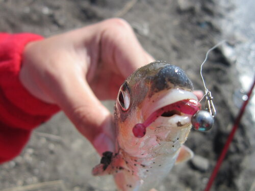 Продолжил ловлю в той же обратке, на одной из проводок поймал мелкоокуня. И слил под ногами гибрида.