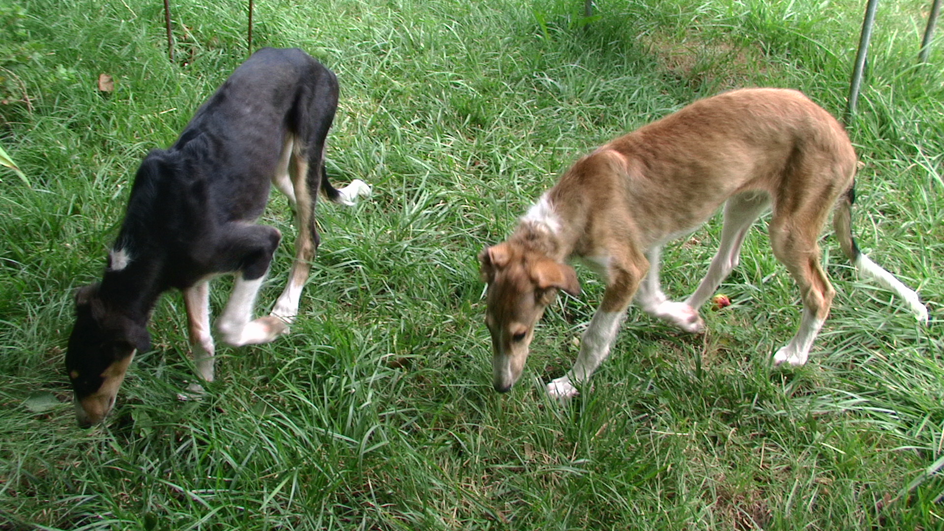 Борзые в нашем коллективе первые. В основном гончаки,курцы,спаниэли и метисы.Товарищ сказал с Александровского питомника.Документы на них не брал т.к. очень дорого, да и заводчиком становиться не собирается, эти щенята для души.Но потаскаем, так хочется посмотреть как борзая стелится в поле в воотчию, а то всё по телевизору.