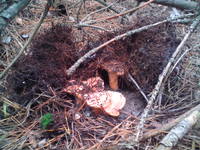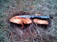 По быстрому в пакетик нарезал. Людей еще никого. Вот вчера тут рыжичков нащелкали, да и несколько срезов белых видел - мне ни одного не попалось. Короче, и часа не прошло, как я дома оказался.