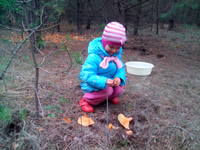 Старшая дочь активно участвовала в поиске, иногда приходилось ловить её, пока она не растоптала недавно найденный гриб.