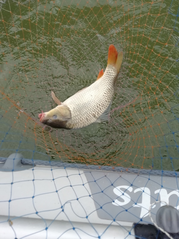 В 6.00 слип на левом берегу. на правом берегу ровным строем от аксайского моста  и до горизонта все забито , на моём же стоит одна лодка на русле. Не захотел я тесниться, стал неподалёку. Замешал сборную солянку из остатков и новых пачек (клубника, тутти фрути, слива) Одна бортовая удочка с ассеметричкой была готова, сразу закинул с боилом слива и опарышем, и стал собирать большой фидер,( короткий кто то умудрился сломать) не прошло и пяти минут, как еле успел поймать удилку. Сазан тянул бодро, борьба минут 5.подняв к борту его осознал, что в сложенный подсак я никак его не заведу ((  после третьей попытки завести в голову без ноги он сделал кульбит и ушёл вместе с монтажом (подвела  основная старая леска 0.25) обидно, первый сазан околотрешник и так глупо потерять. Ладно думаю, шнур уж не оборвет на фидере. Но как назло ещё три подряд схода именно по вине гнилой лески на старой удилке. Остальных я даже не доводил до поверхности. На фидер же с тем же монтажем и нормальным шнуром  ловились только ласкири, на те же бутерброды (бойл 12мм +опарыш) В итоге лишь один  малыш 1,2 кг был удачно припаркован,не считая десятка недокиляков. Не смотря на все остался доволен выездом. Адреналину хватанул, урок получил. Буду снасти приводить в порядок.