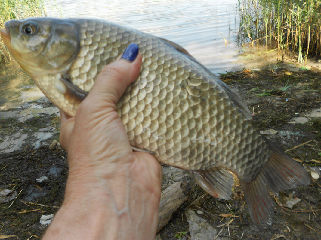 Можно было и не фотографировать одного-единственного карася, но это законный улов, поэтому и сфоткала...