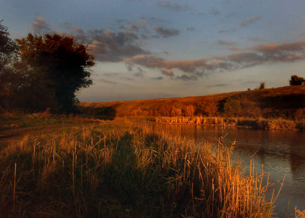 Уже вечерело, и часиков в пол шестого водоем стих и такая стала красивая гладь, что кажется можно по ней промчатся на ту сторону :) но это все было минут десять, и затем смена направления ветра в течении еще 15 минут принесла нам дождик. Но нас этим не напугать, мы на ниве да еще там резина, трактор нервно курит... ;D