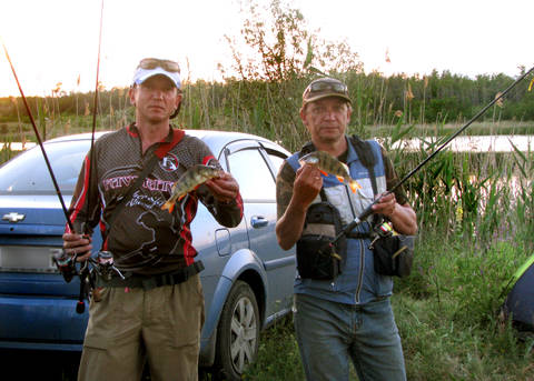 В 18.00 собрались и поехали домой. Поймали примерно по три кило отборного разбойника, а мелкого утопили мешок   ;)Вот так продуктивно, хотя и пол дня и не с утра провели с друзьями время на рыбалке. Всем добра и мира Друзья, и выезжайте в свободное время по чаще с Друзьями на рыбалки, это единственный нормальный отдых от городской суеты и работы! И не хвостика всем ребята  :)