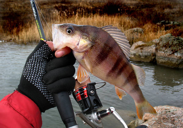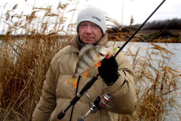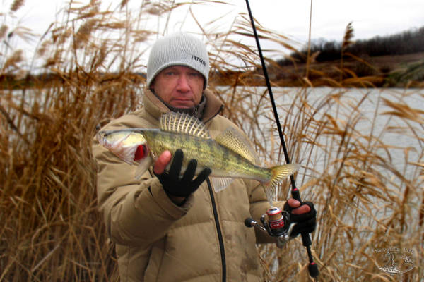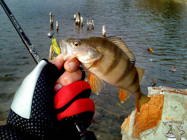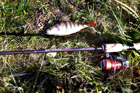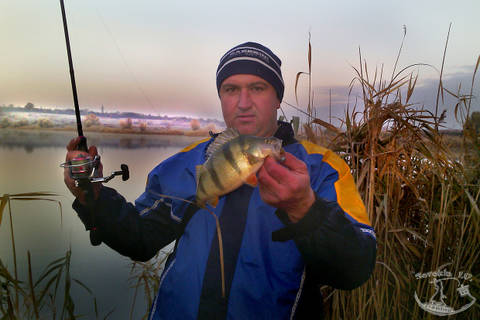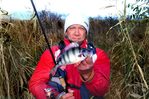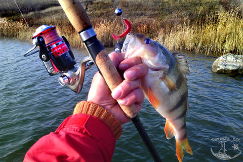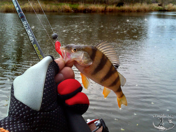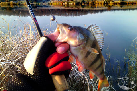 Ближе часам к девяти потеплело, окушок брал на столько вяло, что приходилось его уговаривать и на паузе просто вис на приманку   :)