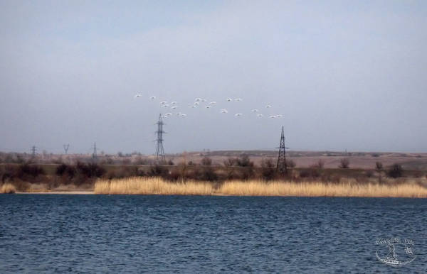 Тут наблюдаю очень интересную картину как стая лебедей прилетела на водоем, примерно в количестве 20 штук, зрелище во  ;)