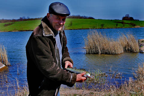 Разложили с товарищем палки и вперед! Несколько забросов и у меня конкретный тук в руку, минут пять вываживания и красавчик на берегу  :)