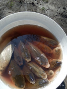 Наконец и я открыл сезон жидкой воды!!! Стояла делема на Набережную или на каналы за карабасами... Но так как хотелось половить на удочку, каналы победили!!! Ловил на канале возле платника на 22км... Ловилось на червя!!! В начале было тихо и комфортно, но задувший запад охлаждал и нагонял волну... Вода поднялась как минимум на 0,5м. Рыбаки присутствовали... Результаты у всех по разному!!! На платниках (Кумжинка, Чудное, 22 км) народу полно!!! Напротив на 22км сидел мужик... Тоже таскал карасей, но за деньги!!! На жареху поймал!!! Малая обожает жареную икру!!! Всем НХНЧ.