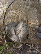 Только увидел, на  меньшем кусок сетки впилась в чешую, забадали браконьеры