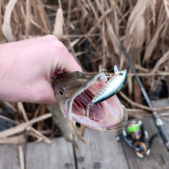 Сегодня тоже прошёлся по Тузловке с кастингом. Щука была довольно вялая, часто мазала мимо воблера. Получилось подцепить 10-12 щупачей по 100-500 грамм. В основном зубастые выходили за приманкой к берегу и там уже в пределах прямой видимости атаковали. Был один выход хорошей "мамки" на 2кг+, но она дважды промахнулась уже практически под ногами и ушла. Сильный ветер значительно ограничивал возможности заброса, поэтому обловить получилось не все места которые хотелось. Как ветер стихнет хочу с мелкими воблерами пройтись, думаю щупакам они лучше зайдут... да и окуню тоже.