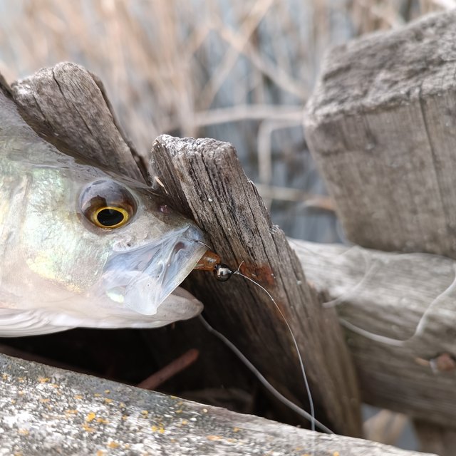Первая рыбалка в 2023 году. 2 поклевки за весь день, одну реализовал. Уровень воды немного выше нормы, прозрачность средняя, много взвешенного мусора в толще воды. Чудом поймал. ;D